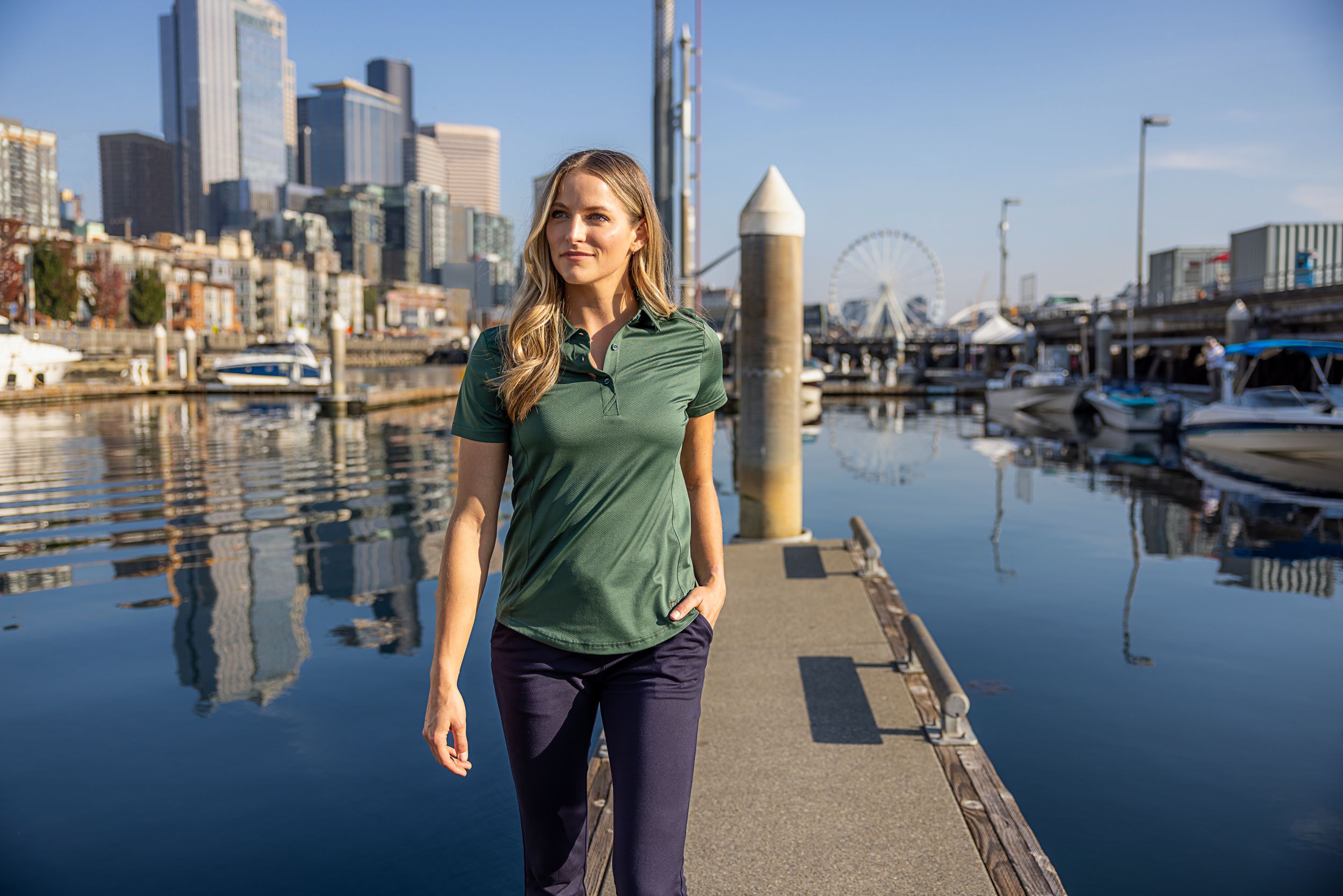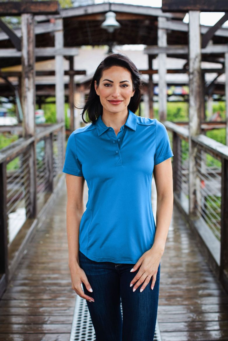 The iconic short sleeve Prospect Polo is engineered for exceptional versatility, designed to be your everyday favorite women’s short sleeve Polo shirt for golf, tennis, boating, the office, WFH, travel, recharging, or adventure. The high quality, modern, ultra-fine pique is smooth against the skin by combining DryTec polyester and spandex to achieve incredible comfort, moisture wicking for a cooling effect, and amazing stretch to keep looking sharp for years.