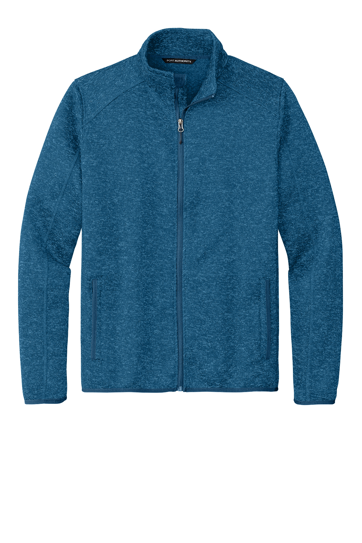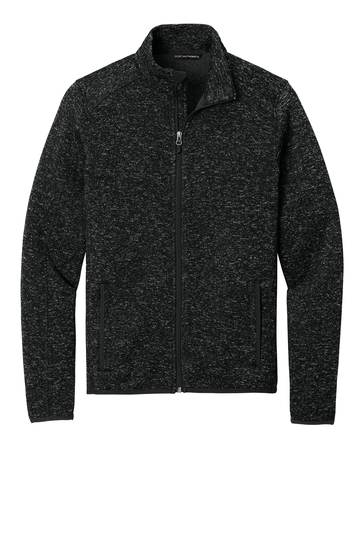 The comfort of a sweater joins the unbeatable warmth of fleece in this modern style. Contrast binding at the cuffs pockets and hem heightens the visual appeal. 8.8-ounce 100% polyester sweater fleece Reverse coil zipper with chin guard Full-length interior storm flap Stretch binding at cuffs and hem Front zippered pockets with knotted zipper pulls and binding trim